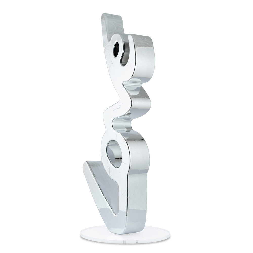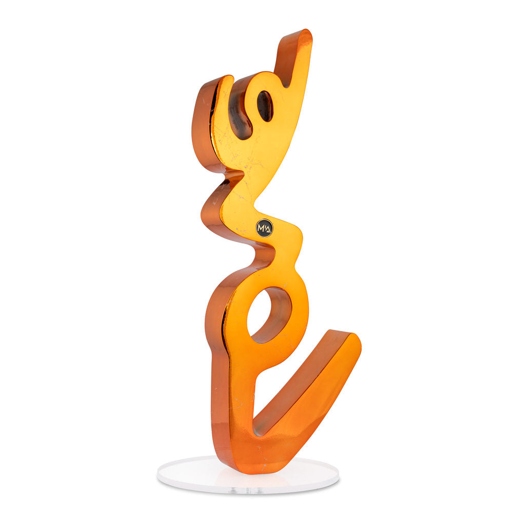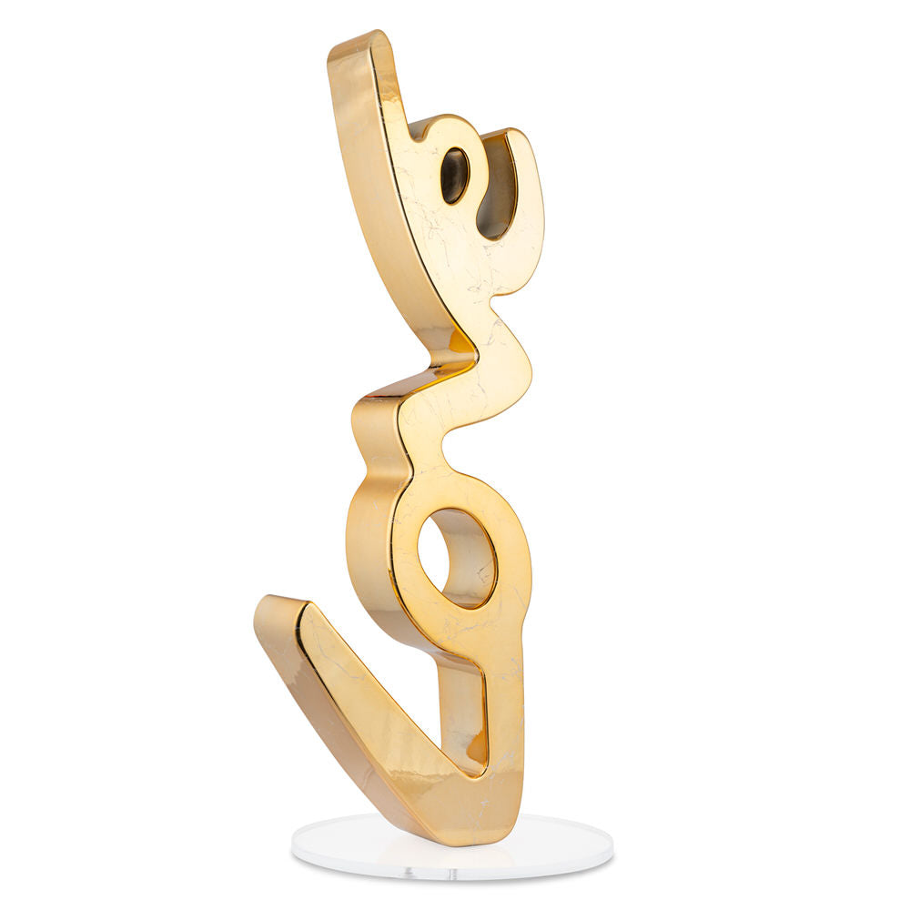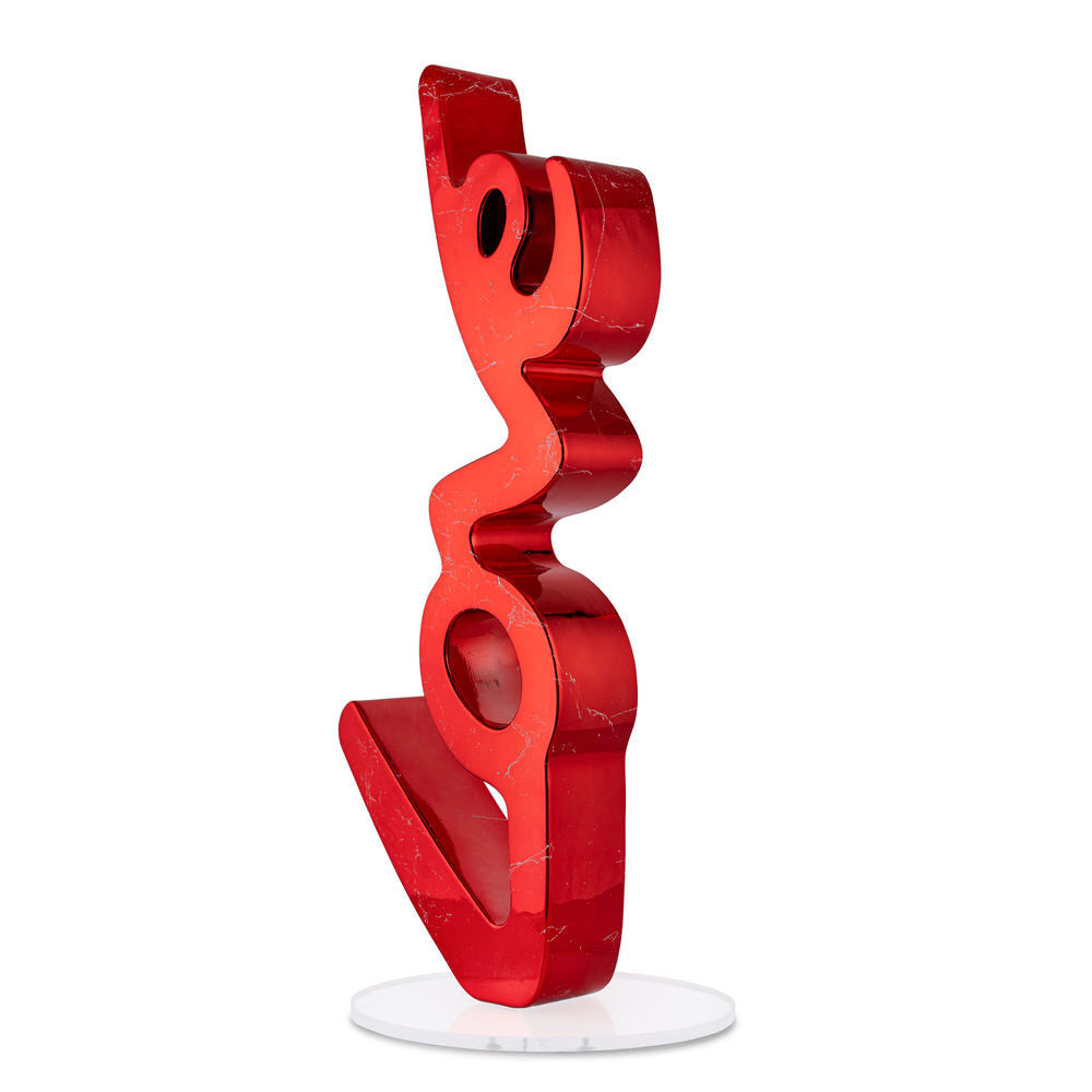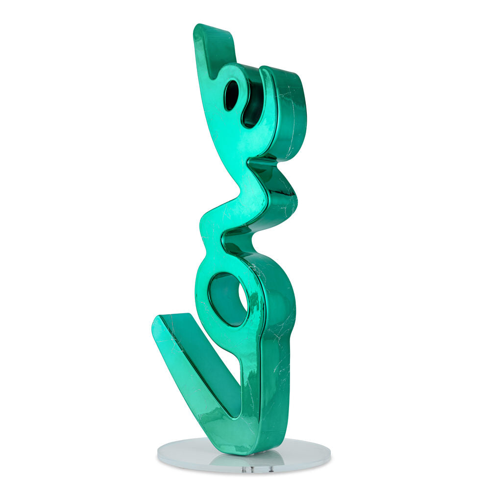 Realizzata in resina e polvere di marmo, con finitura metallizzata a specchio e venature effetto marmorizzato, è una scultura da appoggio che parla il linguaggio del design contemporaneo e dell’emozione autentica.