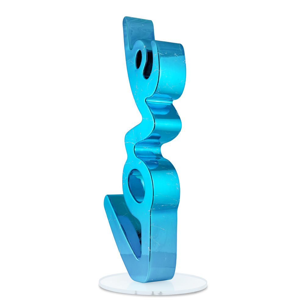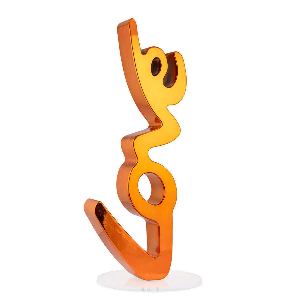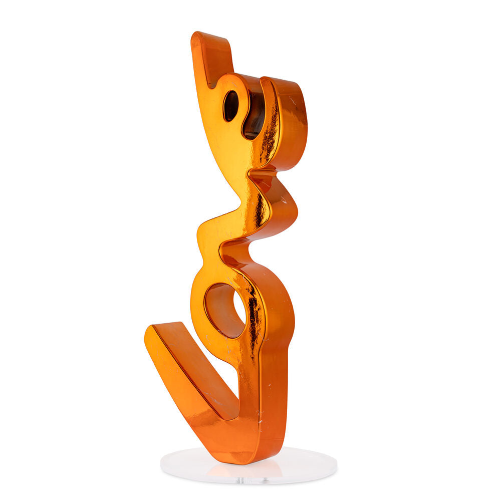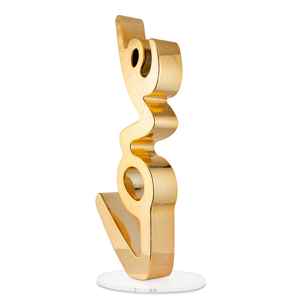 Realizzata in resina e polvere di marmo, con finitura metallizzata a specchio e venature effetto marmorizzato, è una scultura da appoggio che parla il linguaggio del design contemporaneo e dell’emozione autentica.