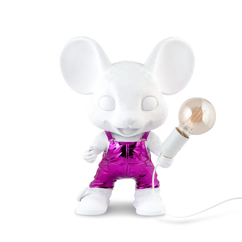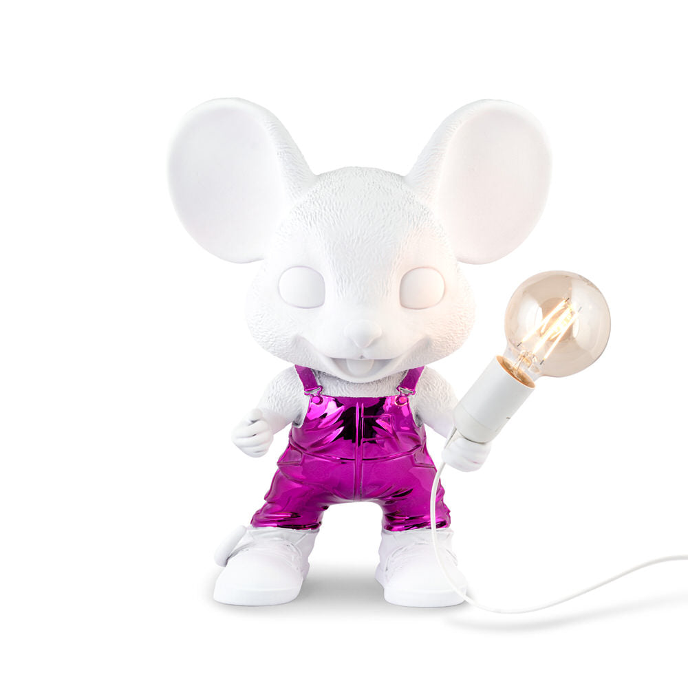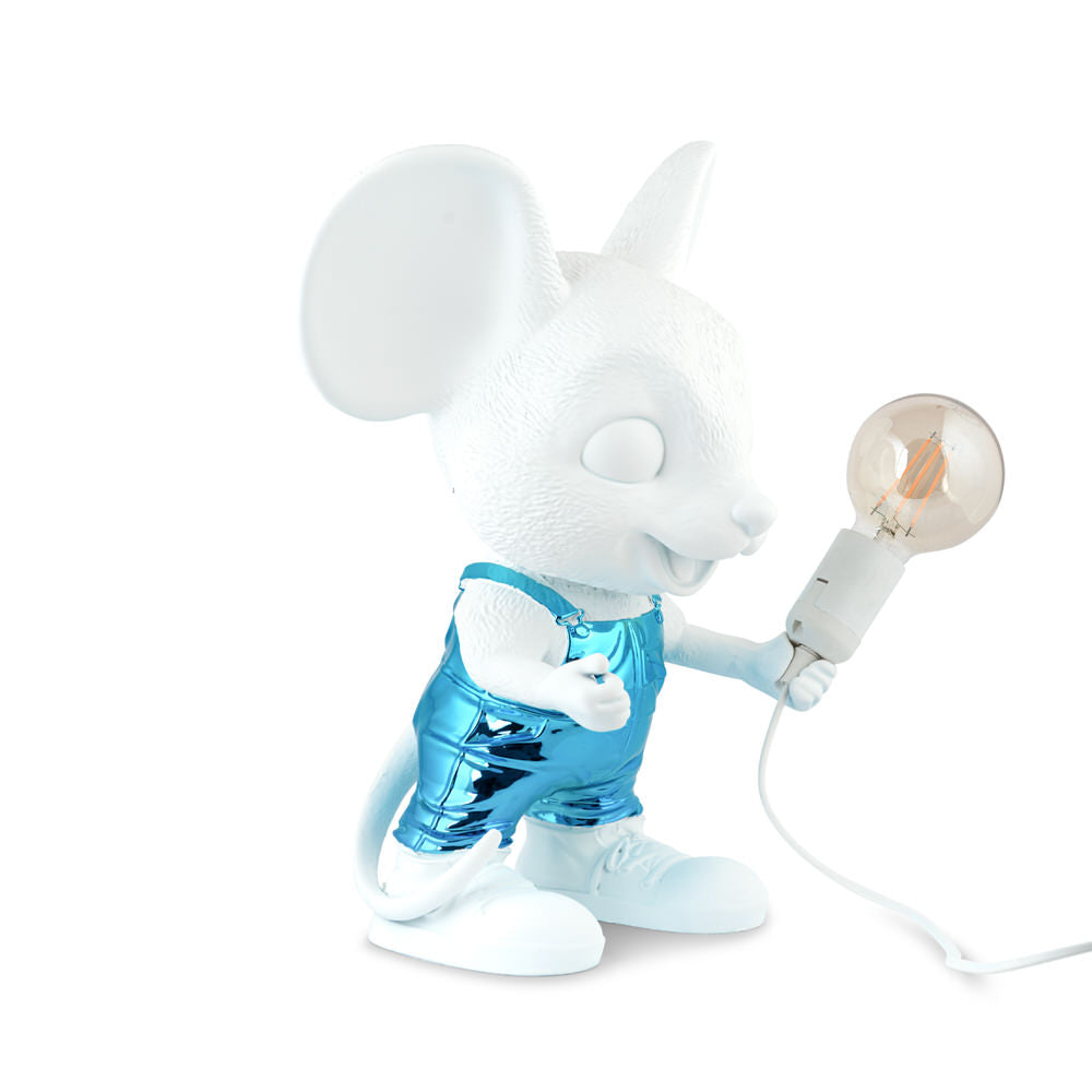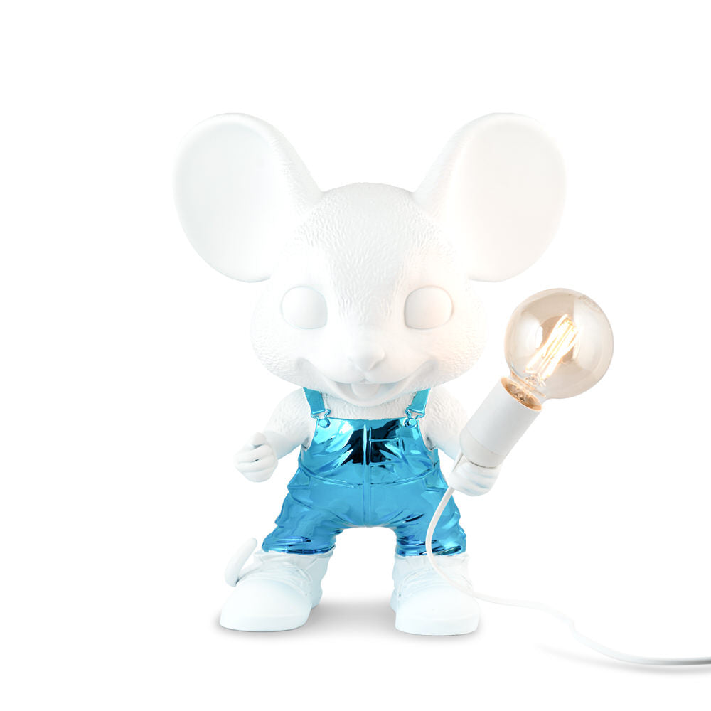 Con la sua lampadina in mano e la salopette brillante, è molto più di una lampada: è un oggetto narrativo, un pezzo di design pop che mette subito di buonumore.
