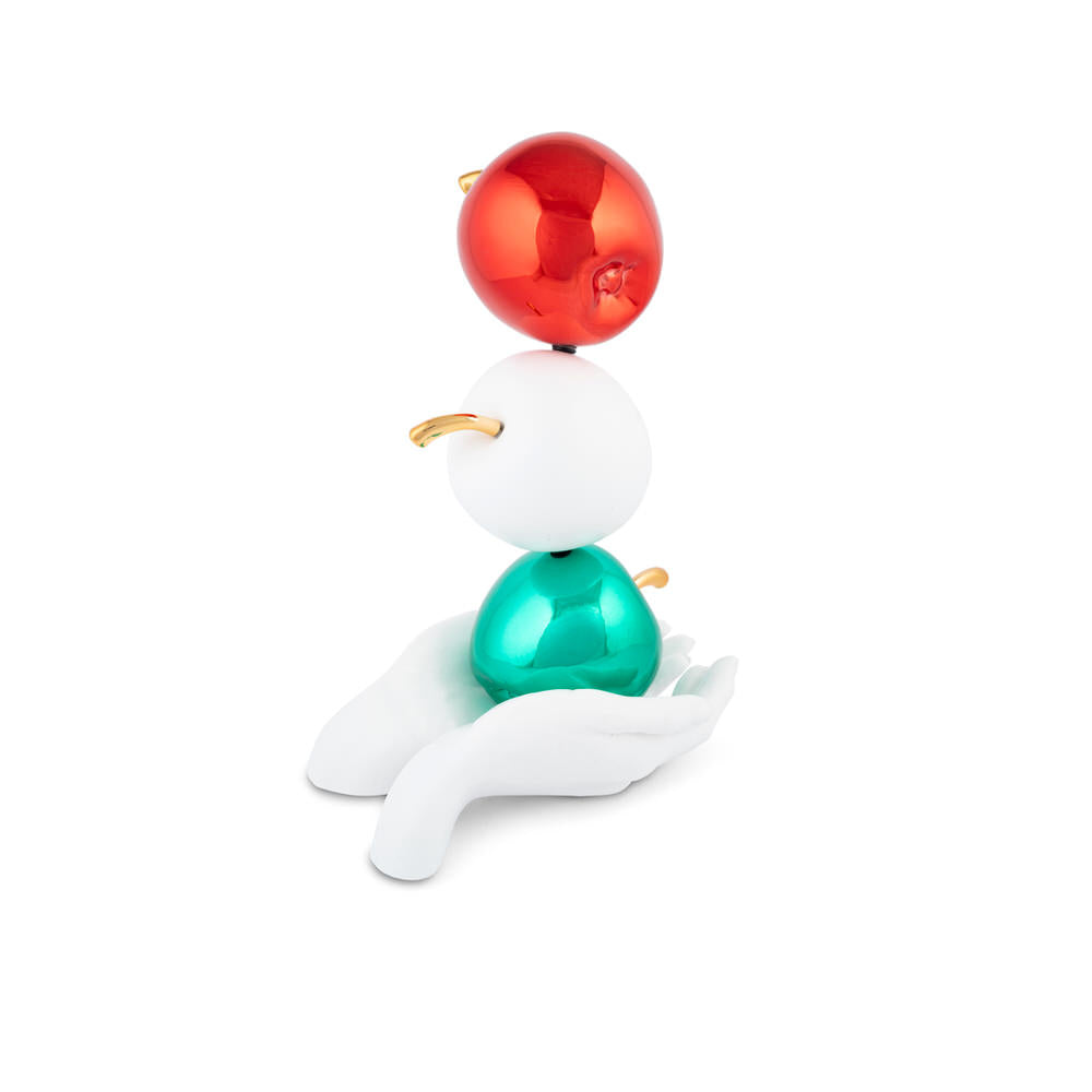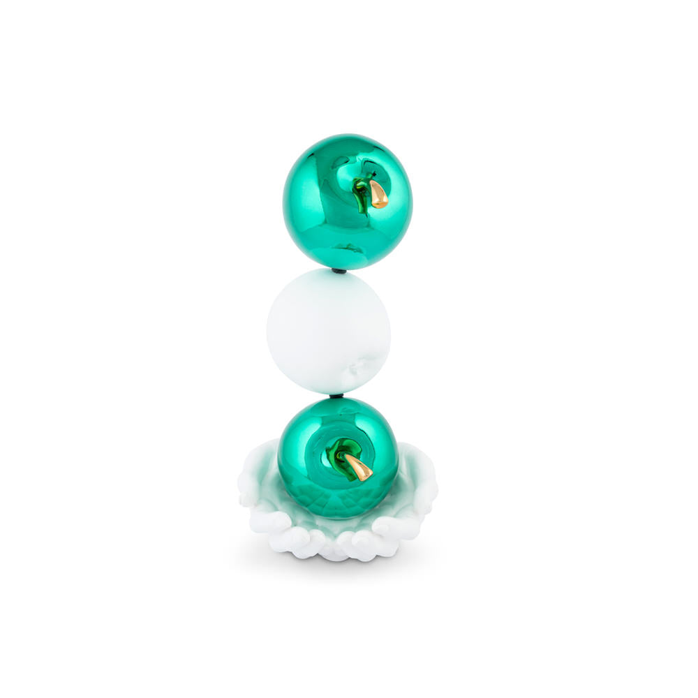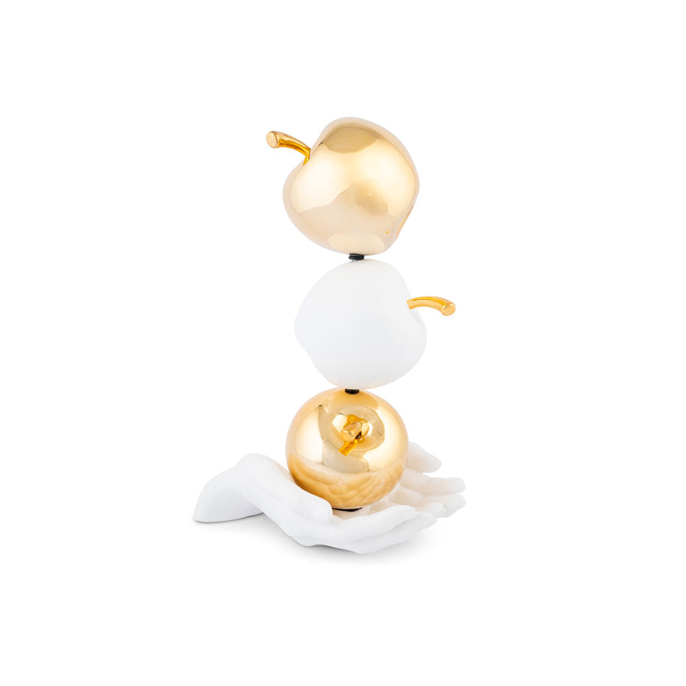Realizzata in resina e polvere di marmo, con una base satinata opaca e dettagli metallizzati a specchio, è pensata per essere un oggetto da appoggio elegante e d’impatto.